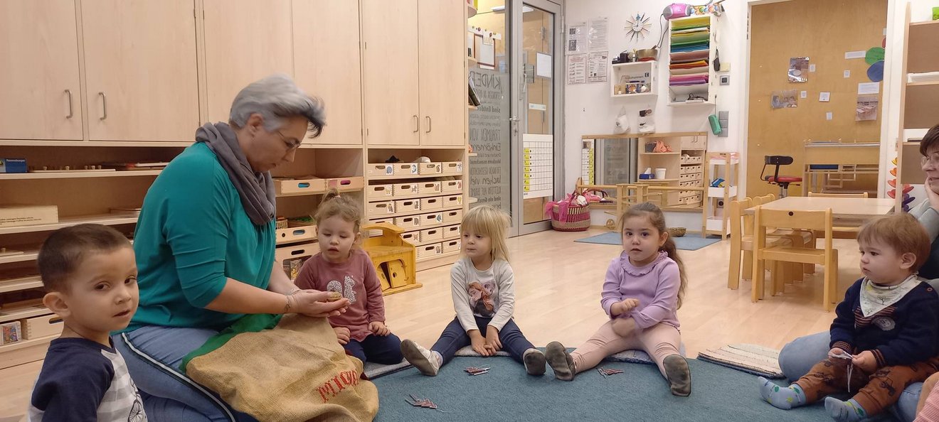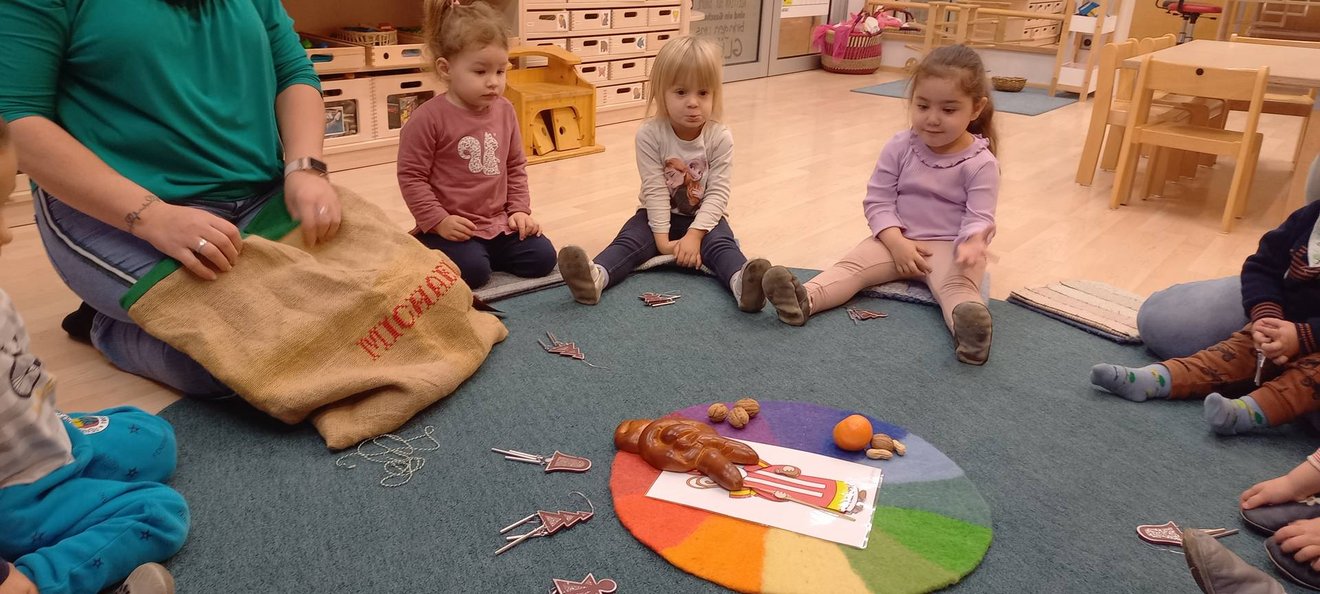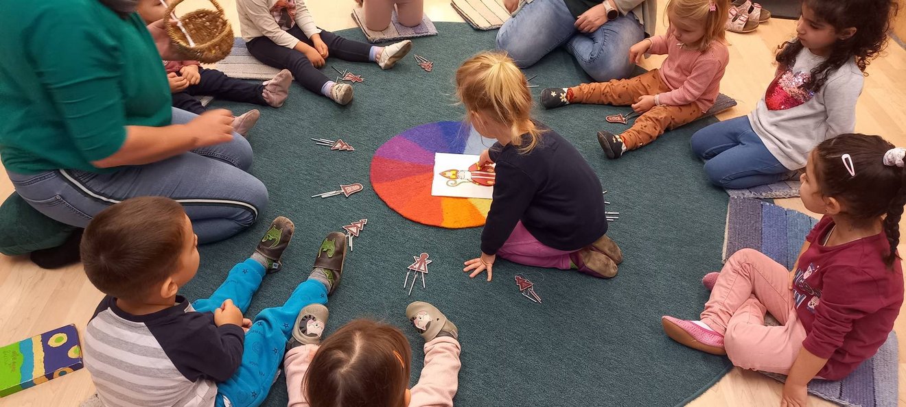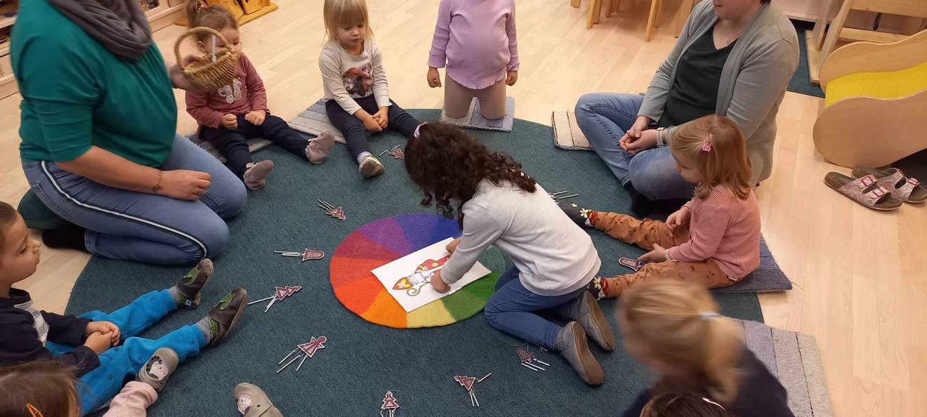 Beim täglichen Morgenkreis werden verschiedene Themen wie zum Beispiel der Jahreskreis, Spiele, Lieder, Gebärden und Gedichte den Kindern in einer kindgerechten Weise nähergebracht.