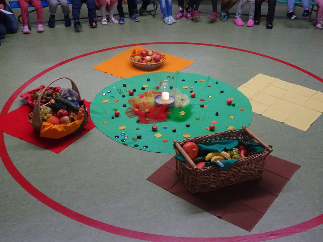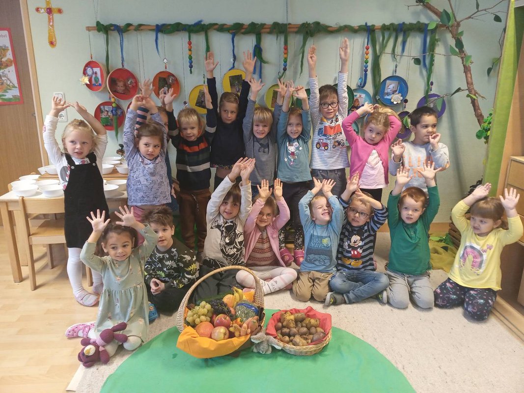 Am Montag, dem 03.10, durften wir alle Don Bosco Kinder zu unserer kunterbunten Erntedankfeier begrüßen. Jedes Kind brachte Obst und Gemüse von zu Hause mit, welches von Pater Guido gesegnet wurde. Gemeinsam haben wir unsere Erntedanklieder gesungen und haben nicht nur Guido zum Strahlen gebracht, sondern auch unsere Gemeindeleiterin Sabrina. Im Anschluss gab es dann noch einen leckeren Riebel mit Apfelmus.