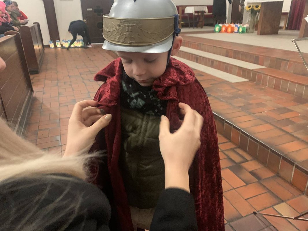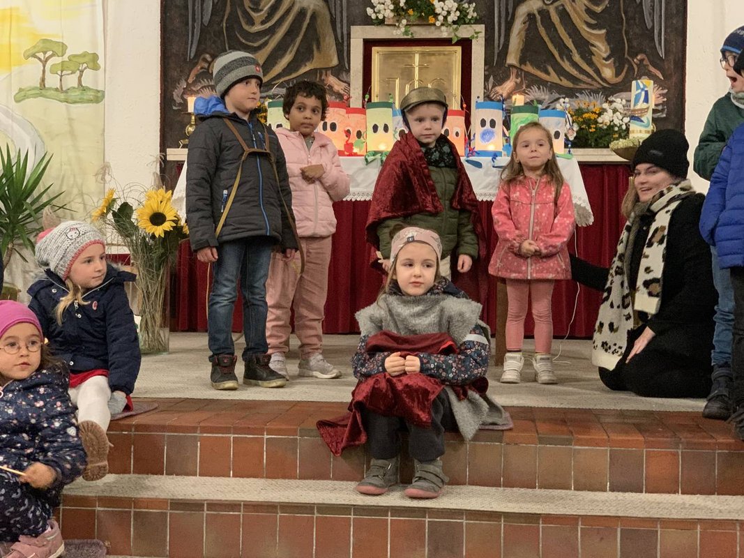 Dieses Jahr war es wieder so weit, am 10. November 2022 hatten wir unsere St. Martinsfeier. Um 16:00 Uhr trafen sich alle Kinder im Kindergarten. Bevor wir mit den Laternen in die Kirche gingen, haben wir uns mit einer leckeren Sternensuppe und Sternenkekse gestärkt. Anschließend liefen wir mit unseren Laternen zur Kirche, wo schon alle Eltern und Geschwister versammelt waren und schon ganz gespannt auf uns warteten. Die Feier wurde mit Liedern, mit einem Gedicht und einem tollen Rollenspiel gestaltet. Zum Abschluss gab es noch eine Überraschung für die Kinder – ein Pferd mit einem Kind, welches als St. Martin verkleidet war, stand vor dem Kircheneingang.