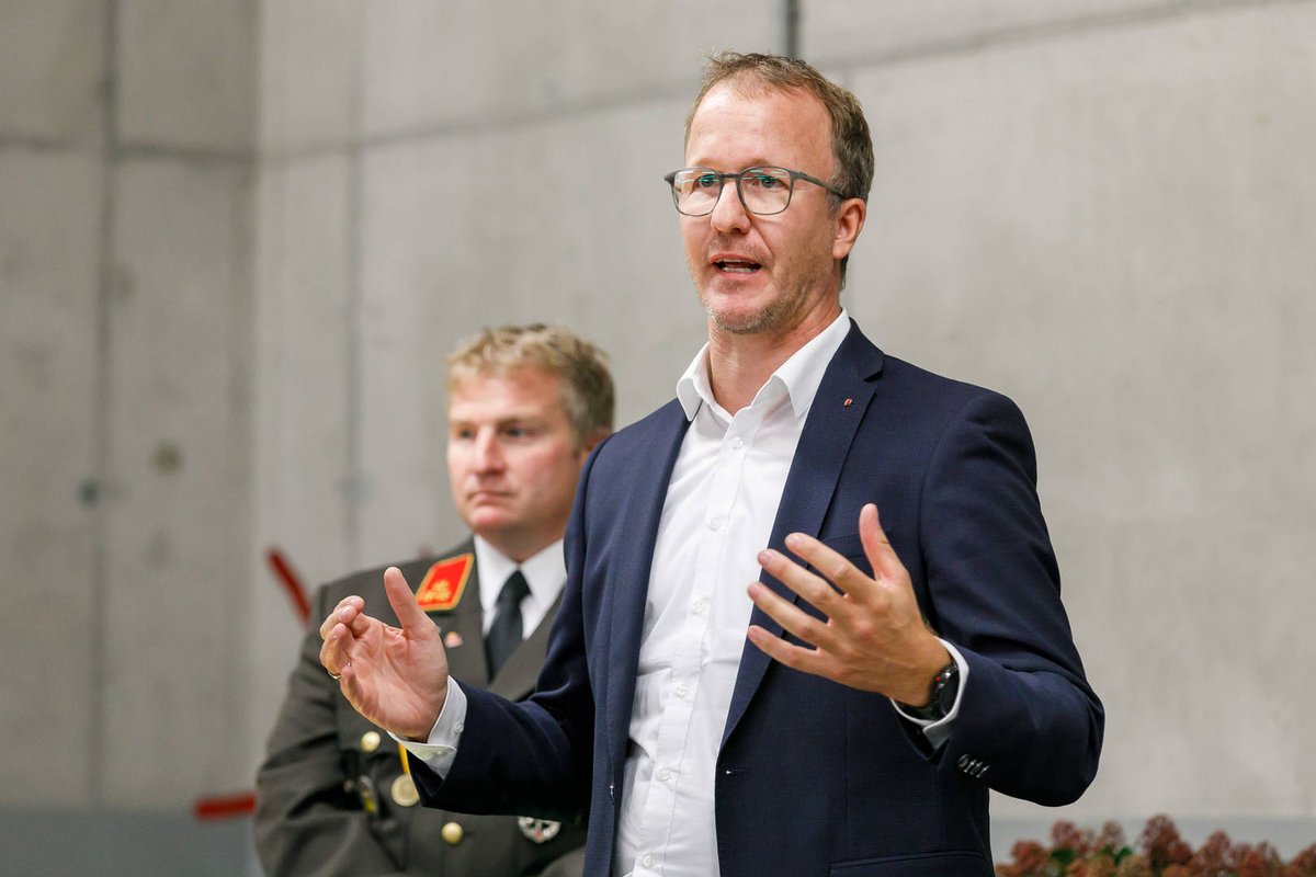 Anlässlich der Jahreshauptversammlung der Betriebsfeuerwehr der Firma Getzner samt Fahrzeugsegnung eines neuen Kommandofunkfahrzeuges am Freitag, 23. September, in Bludenz unterstrich Landesrat Christian Gantner den wertvollen Beitrag von Betriebsfeuerwehren für das Sicherheitswesen in Vorarlberg.
