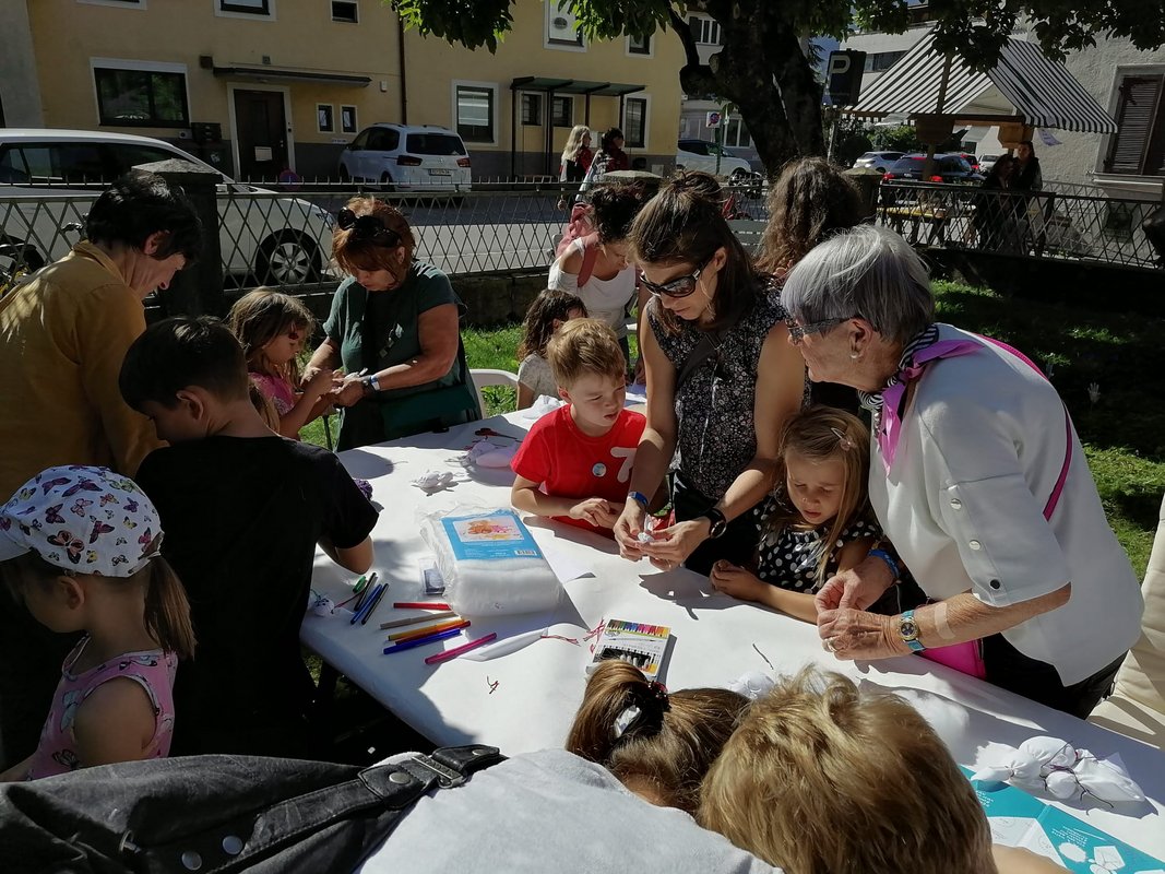 Auch Selbermachen wurde groß geschrieben: Mit dem Kreativduo „amoll“ konnten lustige Sockentiere gestaltet werden, Sigelinde Bernegger bastelte kleine Bimbullis und die Künstlerin Bianca Tschaikner ludt ein in eine „Reise nach Serendip“. Und bei den interaktiven „Musikzwergen“ mit Hannah Juriatti konnten sich sogar Babys und Kleinkinder musikalisch austoben. Ein Highlight des Tages war das Mitmachkonzert von Kinderstar „Teddy Eddy“. Das Kindertanzen mit Raqcuel del Rosario, der Büchertisch der Buchhandlung Tyrolia und eine Mini-Ausstellung zu Susi Weigel rundeten das Programm ab. Für eine kulinarische Stärkung sorgte das Team der Offenen Jugendarbeit Villa K.
