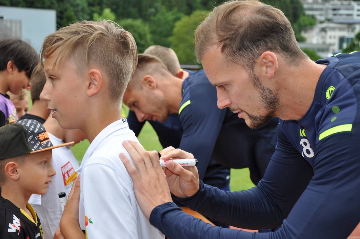 Ein Tag voller Highlights erwartete dann alle Fans am Donnerstag. Mit einem Golfturnier am Golfplatz Bludenz/Braz, einer Autogrammstunde und einem öffentlichen Training zeigten die Profifußballer jede Menge Fan-Nähe. Das wohl größte Ereignis erwartete dann aber alle Liebhaber des Vorarlberger Bundesligisten am Samstag. Die zahlreich erschienenen Zuschauer*innen sorgten für volle Ränge in der Sparkassen Sportarena und feuerten ihre Stars bis zum Schluss lautstark an. Mit dem spannenden Spiel endete auch eine spannende Trainingswoche für die Altacher, die nun voller Tatendrang in die bevorstehende Saison starten. „Das Sommertrainingslager des SCR Altach war sowohl für die Mannschaft, als auch für die Region ein voller Erfolg“, freut sich Bürgermeister Simon Tschann. „Ich wünsche den Spielern weiterhin alles Gute und vor allem eine stabile Saison. Meine Daumen sind gedrückt.“