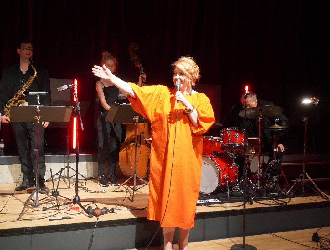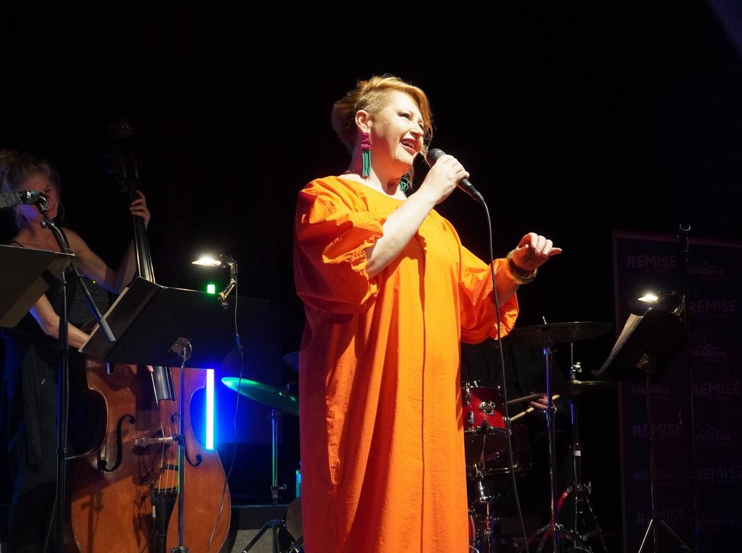 Das jazzige Wochenende hatte am Donnerstag mit dem „Fierobad Jazz Special“ fulminant gestartet. Mona Ida, muscon feat. Caviezel/Rath/Grabher und Hometrainer bespielten die Bludenzer Innenstadt und machten damit das perfekte Warm Up. Der erste Festival-Abend in der Remise war ursprünglich open air geplant –kurzfristig mussten die Konzerte vom Remise-Vorplatz dann doch wetterbedingt in den Saal verlegt werden. Der Vorplatz war bereits mit der großen Eventbühne, Technik, Dekoration und Außenbewirtung für einen Sommerabend gerüstet. Doch kurz nach der Begrüßung von Kulturamtsleiter Stefan Kirisits begann der Regen. Künstler*innen, Techniker, Veranstalter und auch die Besucher*innen bewiesen Flexibilität und Spontanität. Mit nur wenigen Minuten Verzögerung begann die Show im Saal der Remise. Das Devigili/Middelton Quartet fesselte mit feinstem Jazz und Karin Bachner beswingte mit ihrer Pocket Big Band ganz im Zeichen der Jahrhundertstimme Ella Fitzgerald.