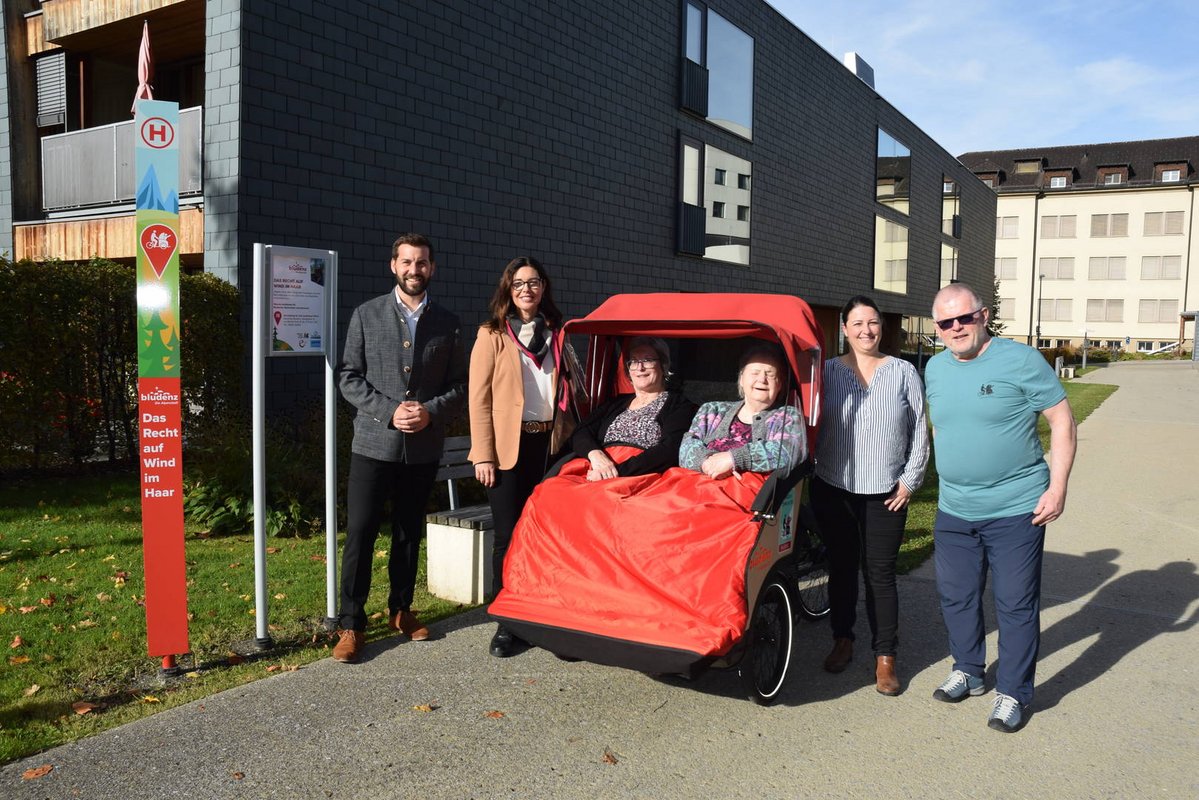 Wiedereinmal den „Wind im Haar“ spüren und die Stadt auf zwei Rädern erkunden – das machen die Rikscha-Piloten möglich. Auf Anfrage nehmen sie betagte Bludenzer*innen mit auf eine ganz besondere Fahrt. Seit Kurzem wird der Abfahrtspunkt zwischen dem Betreuten Wohnen und der SeneCura durch einen echten Hingucker markiert. Bürgermeister Simon Tschann und Stadträtin Andrea Mallitsch nahmen kürzlich die neue Rikscha Haltestelle in Betrieb. „Mit der Haltestelle soll das Gesamtkonzpet der Rikscha-Fahrten ergänzt und in Zukunft noch ausgebaut werden“, erklärt Bürgermeister Simon Tschann. Für kommenden Sommer werden bereits Pläne geschmiedet, um eventuell fixe Abfahrtszeiten anzubieten.