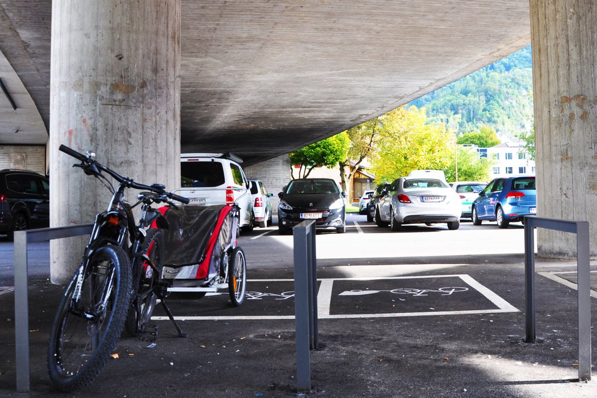 Fahrräder in Übergröße dürfen prinzipiell sowohl am Straßenrand als auch auf Gehwegen abgestellt werden. Räder müssen allerdings so abgestellt werden, dass Fußgänger nicht behindert werden und die Wege rollstuhlgerecht genutzt werden können. Steht ein Fahrrad im Weg oder beschädigt es andere Dinge, beispielsweise dadurch, dass es angekettet ist, darf es entfernt werden. Auch bei Fahrrädern mit Anhängern gilt der Grundsatz, dass platzsparend geparkt werden muss. Wer auf Nummer sicher gehen möchte und sein Fahrrad mit Anhänger sorgenfrei abstellen will, hat nun am Färberparkplatz in Bludenz die Möglichkeit dazu.