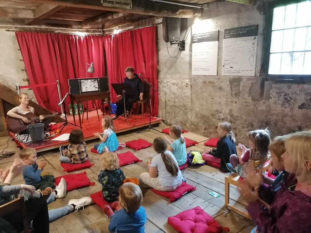 Mit der musikalisch begleiteten Kamishibai-Lesung von Isolde Adamek und Hanna Juriatti hat vergangenen Freitag das Jubiläumsprogramm zum „Kleinen Ich bin Ich“ im Würbel-Areal gestartet.