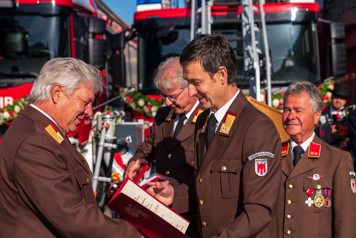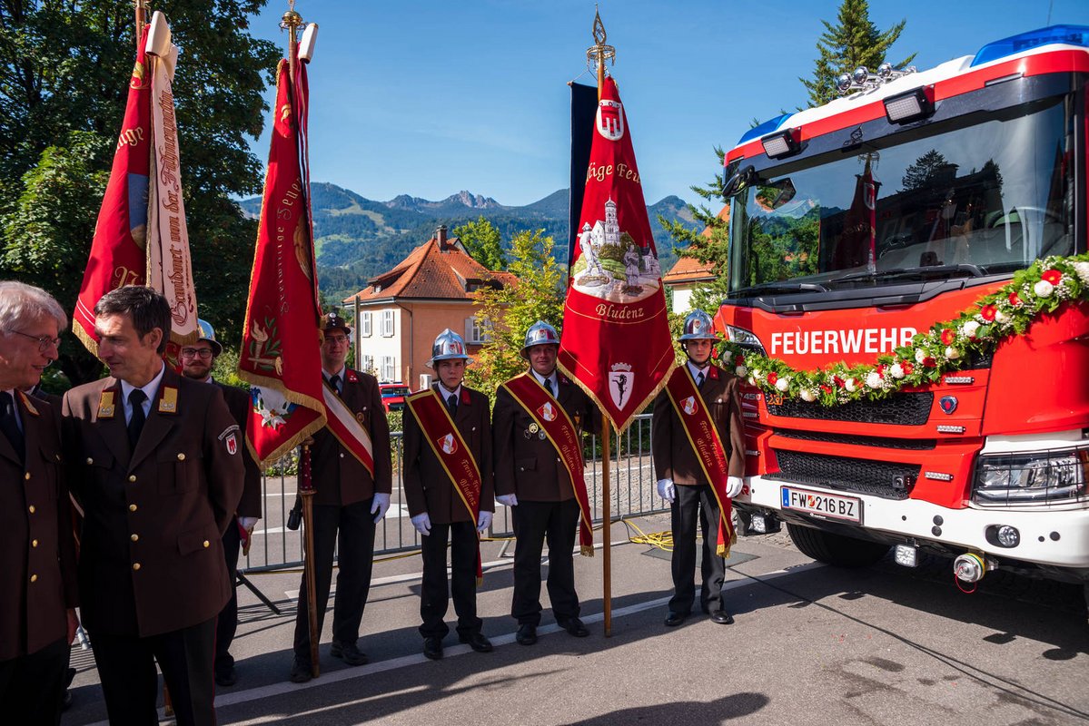 „Als Bezirkshauptstadt – und auch geographischer Mittelpunkt des Bezirkes – hat die Bludenzer Wehr natürlich eine besondere Rolle. Mit über 80 Aktiven, 16 Jungfeuerwehrlern, 9 Fahrzeugen erledigt die Feuerwehr Bludenz rund 120 Einsätze im Jahr, und das freiwillig. Dafür braucht es natürlich auch das nötige Rüstzeug, damit im Notfall effektiv und schnell Hilfe geleistet werden kann. Mit dem Ankauf der beiden neuen Fahrzuege haben wir hier eine wichtige Investition in die Sicherheit der Region getätigt“, so Bürgermeister Simon Tschann im Zuge der Jubiläumsfestlichkeiten.