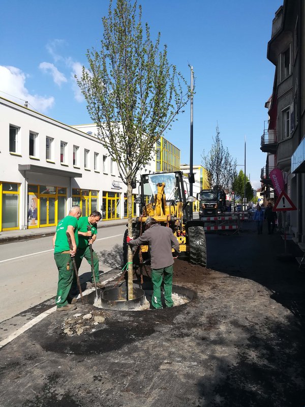Die Arbeiten am Lückenschluss im Bludenzer Radwegenetz befinden sich in der Schlussphase. Eine der schönsten Aufgaben dabei wurde nun finalisiert – in der Hermann Sanderstraße wurden drei Hainbuchen gepflanzt.