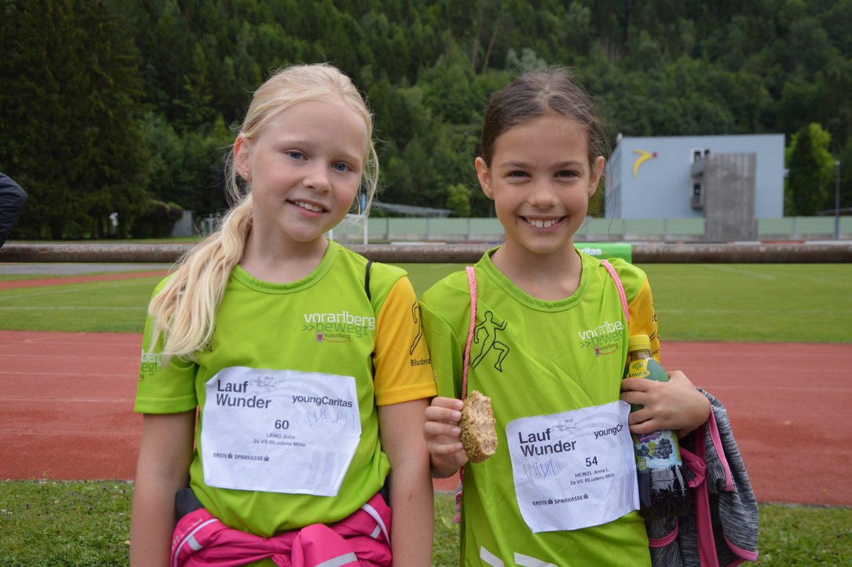 Es war ein wirklich toller Tag für alle Beteiligten, als vergangene Woche das LaufWunder der Volksschule Bludenz Mitte im Stadion in Bludenz nicht über die Bühne, sondern über die Laufbahn ging. Rund 300 Kinder von der ersten bis zur letzten Volksschulklasse rannten, spazierten, hüpften, was auch immer Runde um Runde – jeweils 400 Meter pro Durchgang – und sammelten so Spenden für Kinder aus der Ukraine, die in den Lerncafés der Caritas beim Lernen unterstützt werden. Pro Runde erliefen sie die vorher vereinbarte Runden-Gage von ihren privaten Sponsor*innen: Von der Oma, über den Onkel bis zum Nachbar, oder zur Freundin der Mama war alles dabei. „Es ist unglaublich, mit wieviel Begeisterung und Power unsere Kinder bei der Sache waren“, freut sich Direktorin Manuela Schmidle. Und auch Sabine Fulterer, Leiterin der youngCaritas, ist beeindruckt: „Es hat Spaß gemacht zu sehen, wie die Kids ihre Runden gelaufen sind. Sie haben gestrahlt und gelacht und hatten sichtlich Spaß an der Sache.“