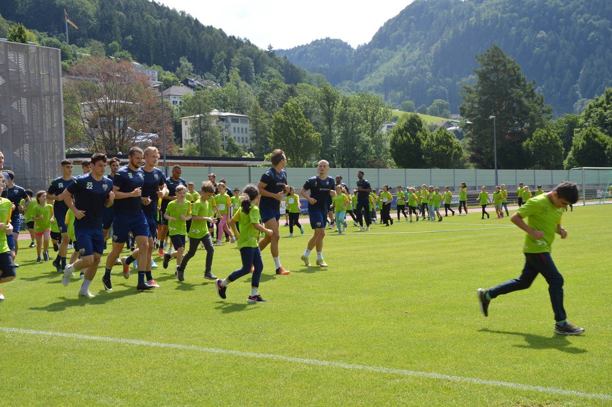 Da blieb den Schüler*innen der VS Bludenz Mitte doch beinahe die Luft weg. Und das nicht nur, weil sie 45 Minuten für ukrainische Kinder in den Lerncafés der Caritas gelaufen sind, sondern weil die Profispieler des SCR Altach mitgemacht haben – zumindest für eine Runde.