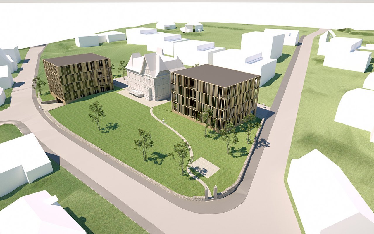 - Zwei Neubauten mit ca. 2.390 m² (Häuser A und B) sowie die denkmalgeschützte Gassner Villa mit ca. 560 m²