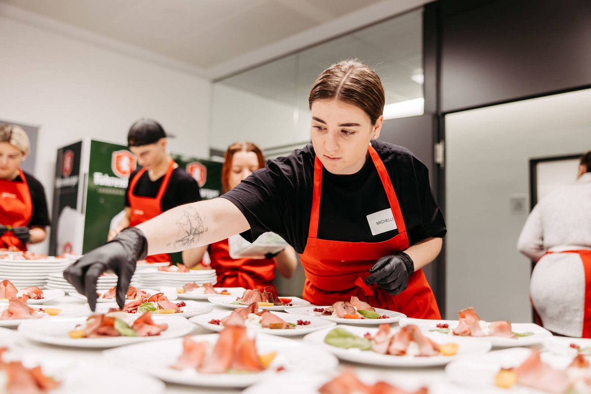Für diesen besonderen Anlass kochten die Nachwuchskräfte auch dieses Jahr wieder groß auf: Mit einem, unter der professionellen Anleitung von Gordana Podgorac, Leiterin F&B Catering im Montforthaus Feldkirch, speziell für diesen Anlass zubereiteten, Fünf-Gänge-Menü, eroberten die Lehrlinge die Herzen und Gaumen aller Anwesenden. Den festlichen Rahmen genossen neben den Verwandten und Lehrverantwortlichen nicht nur Getzner Textil CEO Roland Comploj und CTO Rolf Gottmann sowie Geschäftsführer der Getzner-Holding Markus Comploj, sondern auch Staatssekretärin Claudia Plakolm, Landesrat Marco Tittler und der Bludenzer Bürgermeister Simon Tschann. Für großes Gelächter und ausgelassene Stimmung sorgte das Kabarett-Programm „Fäschta“ von Markus Lins und Manfred Kräutler.
