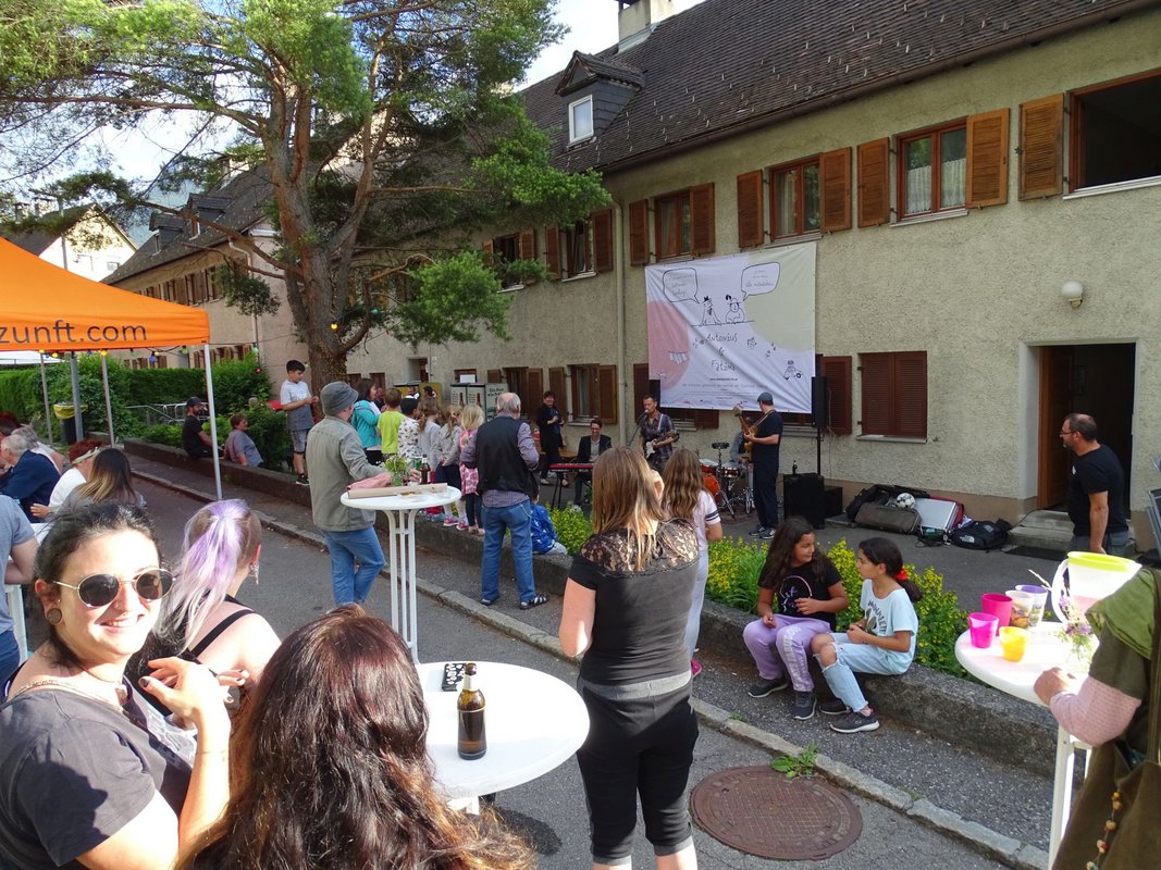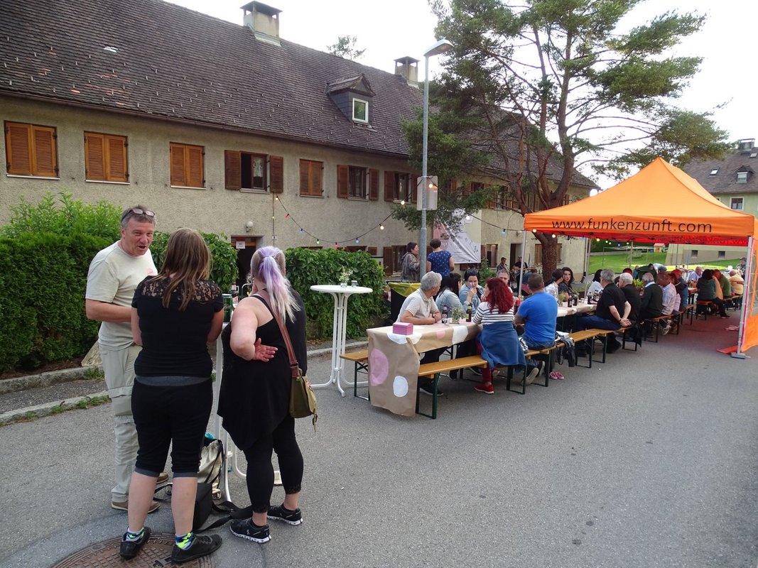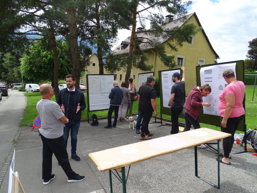 Zahlreiche Bewohner:innen, darunter eine ganze Kinderschar, haben sich vergangene Woche beim ersten Living Lab in der Südtirolersiedlung in Bludenz getroffen. Einen ganzen Nachmittag lang haben die Menschen vor Ort bei Tischgesprächen geredet und erzählt. Am Abend feierte die Nachbarschaft beim Live-Konzert.