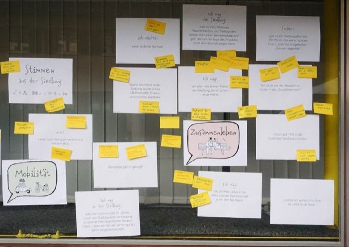 Wertvolle Einblicke in den Kosmos der Siedlung erhielt das Planungsteam zu den Themen Freiraum, Zusammenleben, Energie, Gebautes und Mobilität. An thematischen Stationen und bei Spaziergängen durch die Siedlung zeigten die Bewohner:innen ihr Lebensumfeld. Was schätzen die Menschen? Wie sieht der Alltag in der Siedlung aus? Wo sehen sie Änderungsbedarf, und was würden sie künftig schön finden.