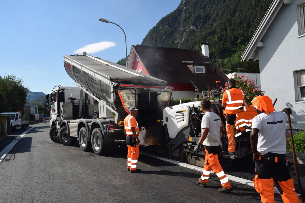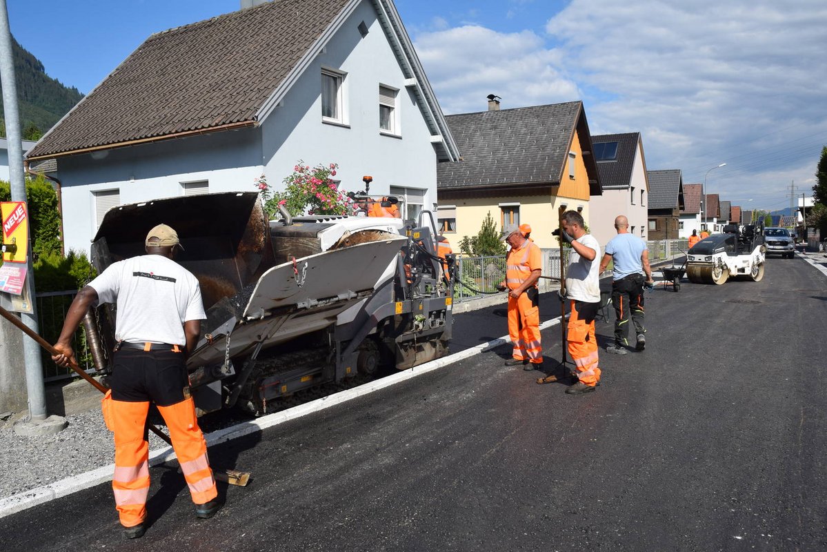 Große Gerätschaften sind in der Bludenzer Klarenbrunnstraße am Werk. Die finalen Asphaltierungsarbeiten finden hier gerade statt.