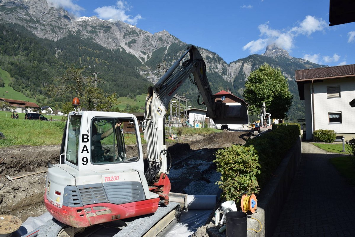 Der Zafeierweg in Außerbraz wird derzeit auf einer Länge von rund 170 Metern saniert. Seit Mitte September wird in Außerbraz unter Volldampf gearbeitet.