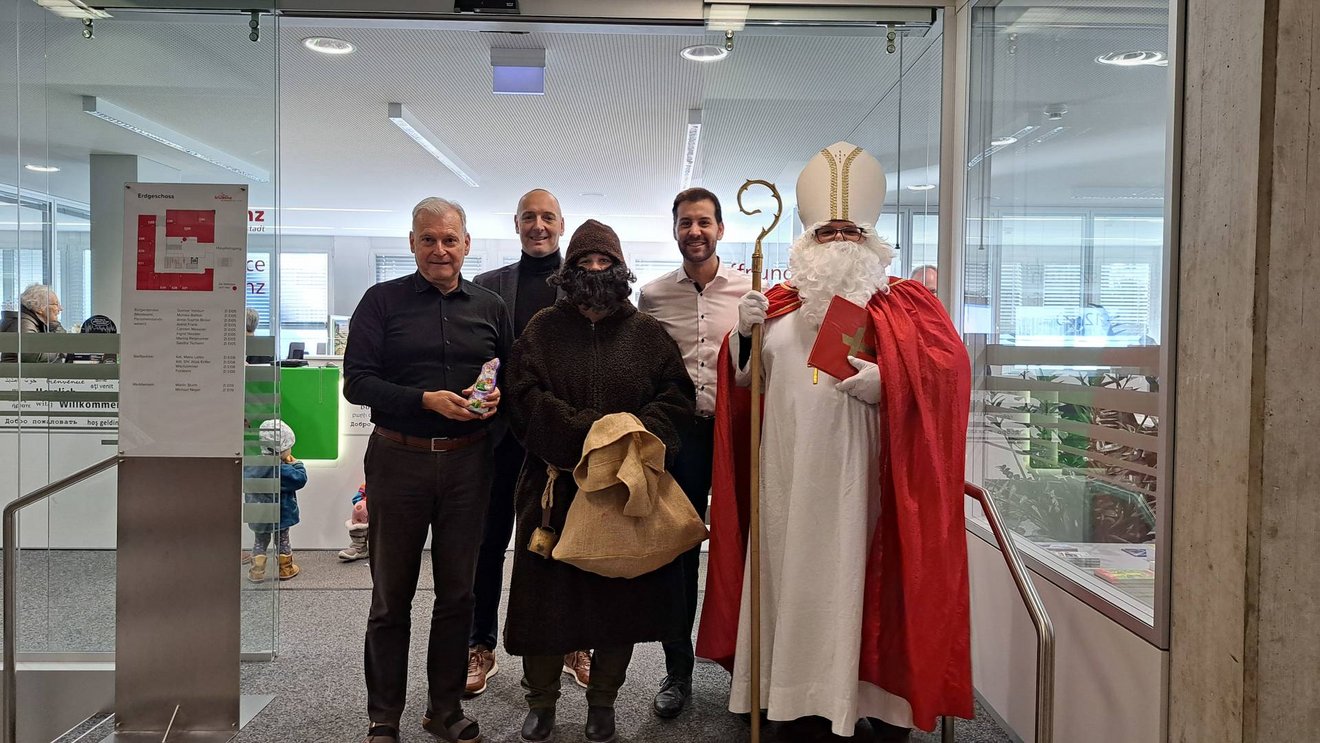 Der Besuch des heiligen Nikolaus ist nicht für die Kleinsten ein Erlebnis. Auch im Rathaus Bludenz sorgte der Nikolo, in Gesellschaft des Knecht Ruprecht, für Freude bei den Besucher*innen des Bürgerservice und den Mitarbeiter*innen des Rathaus. Im Gepäck hatte er einen Sack voller süßer Überraschungen.