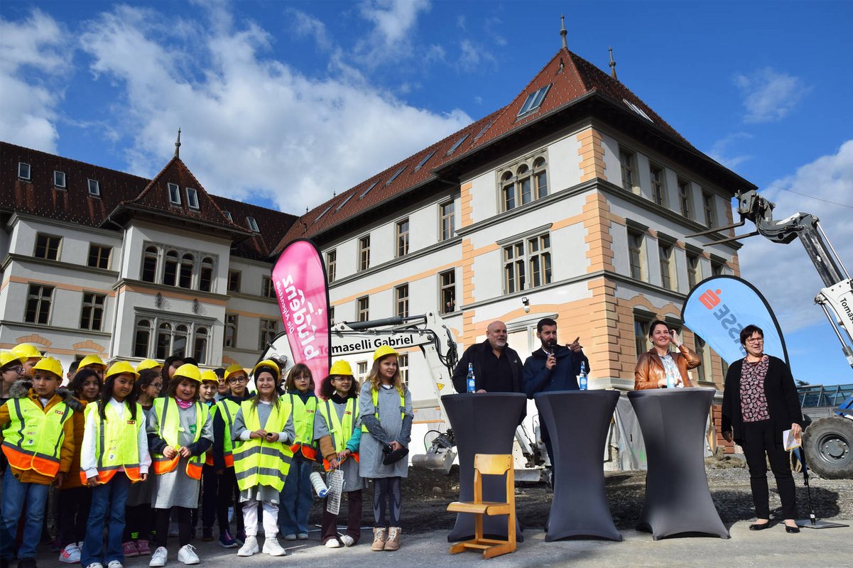 Groß ist die Freude am Weltkindertag bei der Volksschule Bludenz Mitte. Die Bagger rollten an und der lang ersehnte Spatenstich für die bauliche Erweiterung fand statt. Um mehr Platz und Freiraum für die rund 300 Bludenzer Schüler*innen und rund 30 Lehrer*innen zu schaffen, wird das Schulhaus nun um seine bisherige Form erweitert.