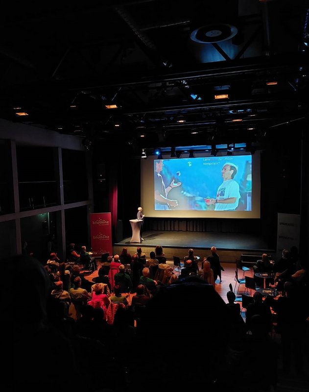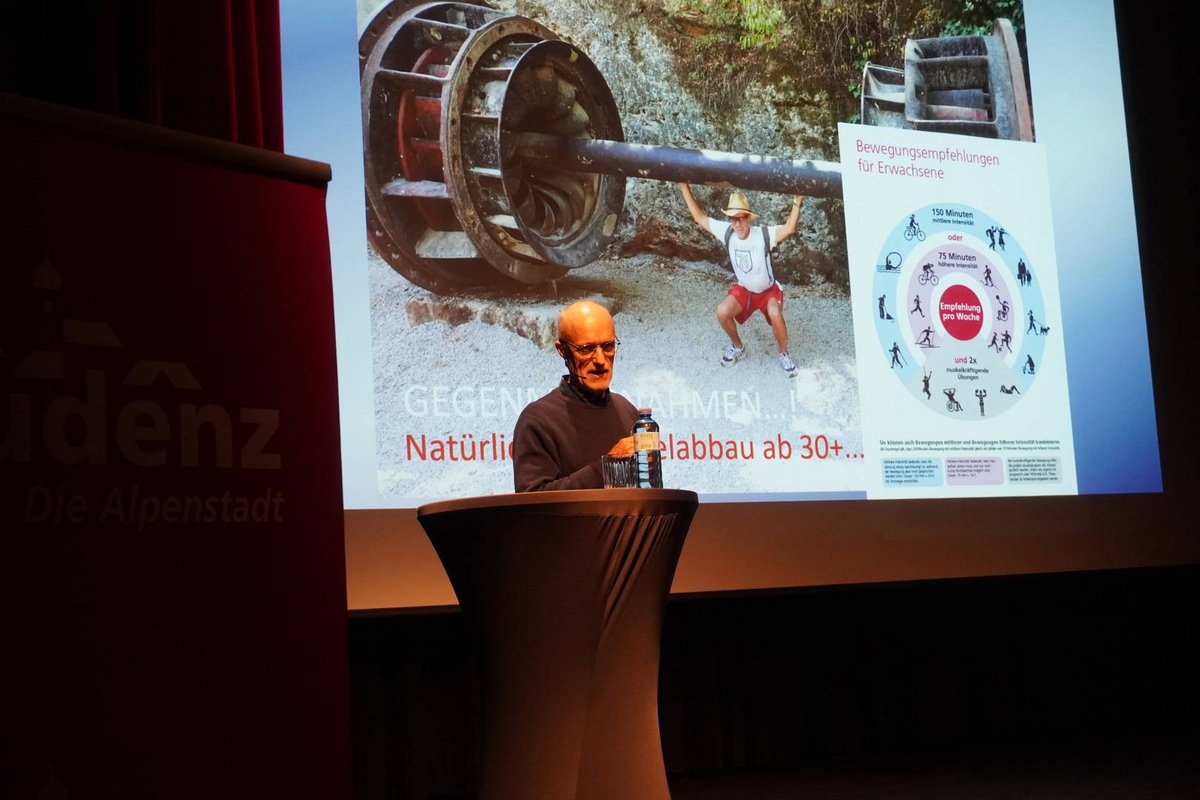 Vom langjährigen Fan, bis zum Sportbegeisterten und sogar ein ehemaliger 94-jähriger Ausbilder Innauers waren unter dem bunt gemischten Remise-Publikum. Toni Innauer berichtete von seinen Erfahrungen aus einer ereignisreichen Sportlerkarriere und gab Anreize für die „sitzende Gesellschaft“, denn die Realität vielen Menschen findet zusehends im Sitzen statt. DIE 12 TIROLER – das sind zwölf Tiere aus dem alpinen Lebensraum, Namensgeber seines neuesten Buchs sowie die zwölf selbstentwickelten Übungen, die sich darin finden. Innauer zeigte den rund 150 interessierten Zuhörer*innen bildhaft untermalt, wie Bewegung jederzeit in den Alltag integriert werden kann, etwa beim Blumengießen oder Fernsehen.