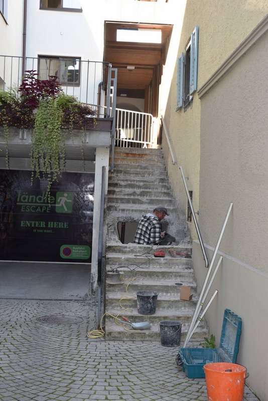 Ende Oktober sollen die Arbeiten abgeschlossen sein und sowohl Durchgang als auch Treppe sind dann wieder in neuem Glanz begehbar.