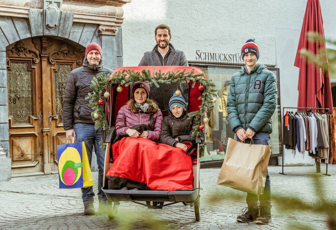 Die Bludenzer Geschäfte überraschten mit kreativen und liebevollen Geschenkideen und sind auf den sicheren Einkauf ihrer Kunden bedacht. Die Rikscha-Tour führte die Familie vom Benetton über Tom Tailor durch die Bludenzer Altstadt, bis das Einkaufserlebnis zu guter Letzt im NöRD Shop in der Sturnengasse endete.