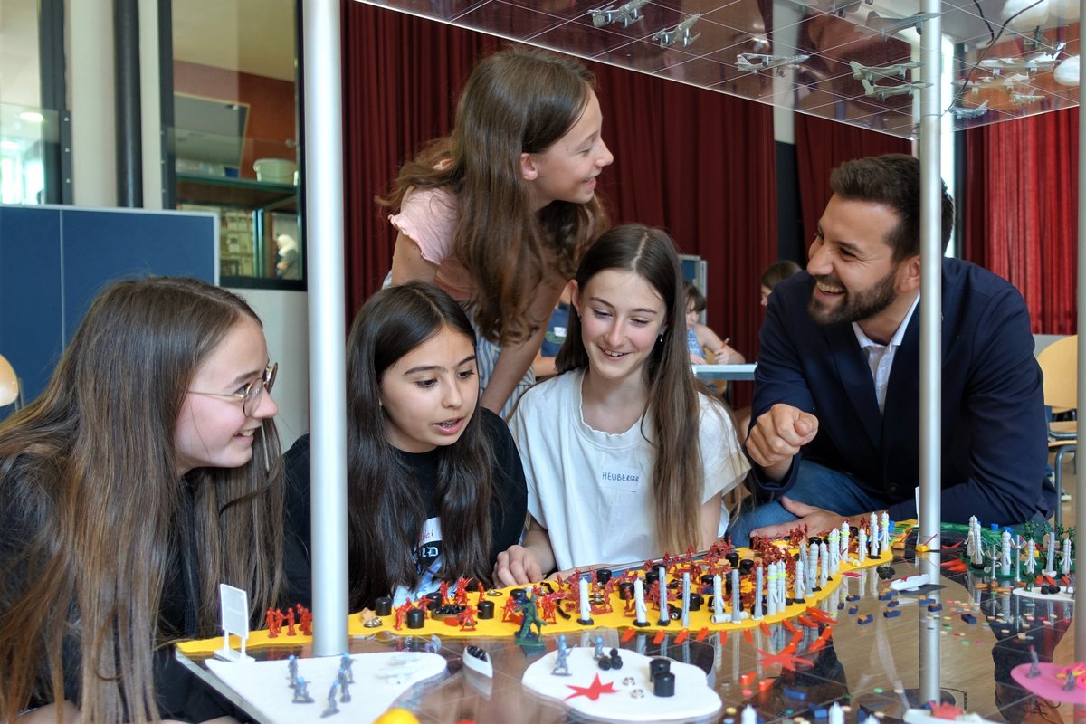 Bürgermeister Simon Tschann nahm sich bei einem Besuch Zeit, um die Lösungsansätze der jungen Leute kennenzulernen. Er zeigte sich beeindruckt von ihren Fähigkeiten, die Krisen der Welt in ihren Wechselwirkungen zu denken. „Die Inhalte der Weltpolitik bereits für Jugendliche aufzuschließen finde ich genial. So können sie auch die Herausforderungen, die in einer Stadt wie Bludenz vorkommen, besser verstehen.“ Diese Meinung teilen auch die Spielbegleiterinnen Carmen Feuchtner (Welt der Kinder) und Sylvia Kink-Ehe (youngCaritas) mit dem Bludenzer Bürgermeister.